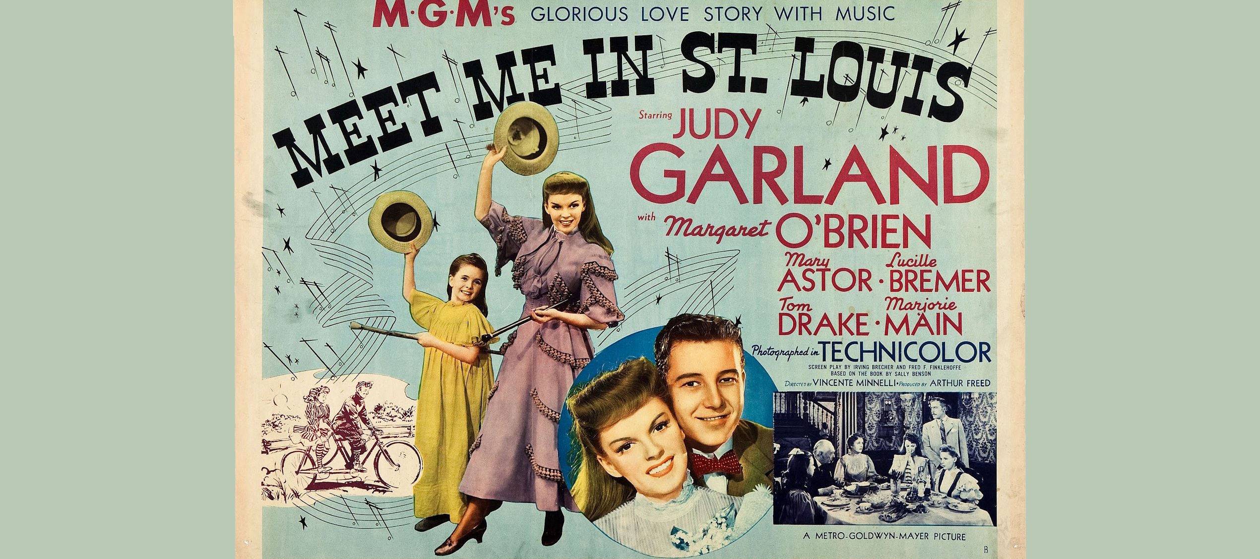 Meet Me in St. Louis est un film musical de Noël américain de 1944 produit par la Metro-Goldwyn-Mayer. Divisé en une série de capsules saisonnières, commençant par l’été 1903, il relate l’histoire d’une année dans la vie de la famille Smith à St. Louis jusqu’à l’ouverture de la Louisiana Purchase Exposition (plus communément appelée l’Exposition universelle) au printemps de 1904. Le film met en vedette Judy Garland, Margaret O’Brien, Mary Astor, Lucille Bremer, Tom Drake, Leon Ames, Marjorie Main, June Lockhart et Joan Carroll. Le film a été réalisé par Vincente Minnelli, qui a rencontré Garland sur le plateau et l’a ensuite épousée.