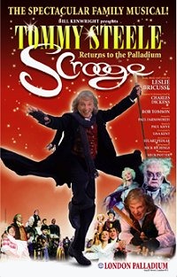 Type de série: RevivalThéâtre: Palladium Theatre (Londres - Angleterre) Durée : 2 mois 1 semaine Nombre : Première Preview : Thursday 20 October 2005Première : Tuesday 08 November 2005Dernière : Saturday 14 January 2006Mise en scène : Bob Tomson • Chorégraphie : Lisa Kent • Producteur : Avec : Tommy Steele (Scrooge), Tom Solomon {Young Scrooge), Glyn Kerslake (Bob Cratchit), Barry Howard (Jacob Marley), Gemma Page {Christmas Past), James Head {Christmas Present), Ian Sanders {Christmas Yet to Come)Commentaires : According to a plaque in the Dress Circle Bar, Tommy Steele has headlined more performances at the London Palladium than any other artist (his last show being “Singing in the Rain” in 1989). Although this cheery cockney persona doesn’t immediately suggest Scrooge, he was welcomed back like a conquering hero. It was very enjoyable Christmas fayre.Presse : NICHOLAS DE JONGH for THE EVENING STANDARD says, "Melancholia, music-hall atmosphere and pantomimic air... infests this...musical...plodding production."