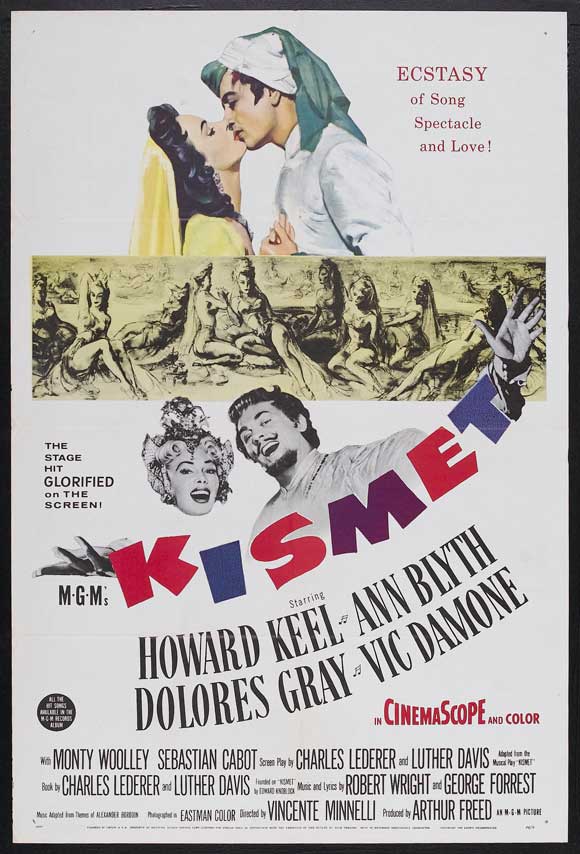 Type de série: FilmThéâtre: *** Film (*** - ***) Durée : Nombre : Première Preview : Saturday 08 October 1955Première : Saturday 08 October 1955Dernière : InconnuMise en scène : Vincente Minnelli • Chorégraphie : Producteur : Avec : The Poet (Hajj) ... Howard Keel / Marsinah ... Ann Blyth / Lalume ... Dolores Gray / The Caliph ... Vic Damone / Omar ... Monty Woolley / Wazir ... Sebastian Cabot / Jawan ... Jay C. Flippen / Hassan-Ben ... Jack Elam / Chief Policeman ... Mike Mazurki / Second Policeman ... Ted de Corsia
