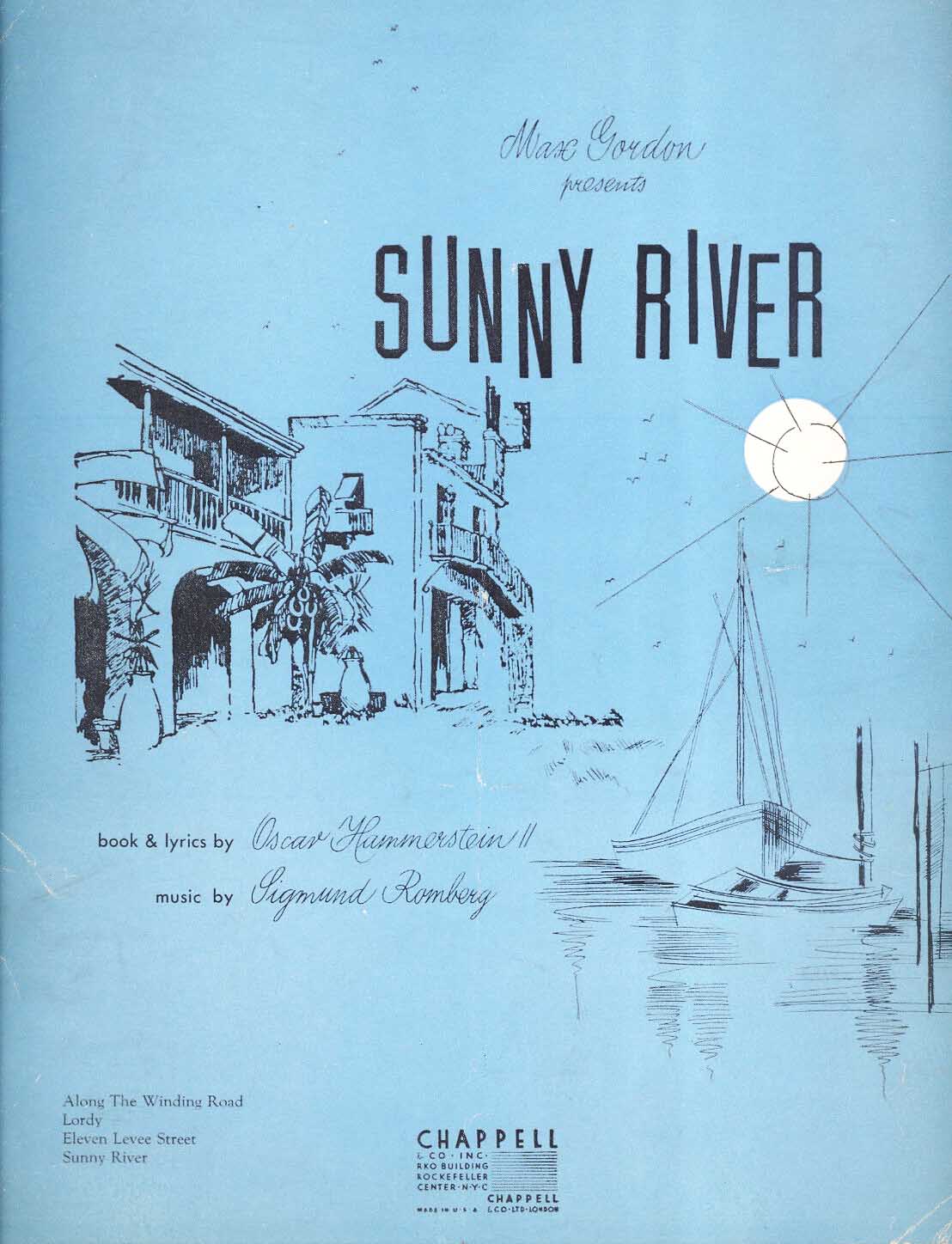 L’opérette d’Oscar Hammerstein II et de Sigmund Romberg, Sunny River, n’a pas réussi à trouver son public. Peut-être qu’un artiste vedette ou une chanson populaire auraient aidé, mais peut-être pas. Le musical était grinçant dans un style d’opérette raffinée à l’ancienne et n’avait probablement pas beaucoup de chance face au monde turbulent de Broadway de l'époque de Panama Hattie () et Sons o’ Fun et surtout l’ultra-élégant et moderne Lady in the Dark ().