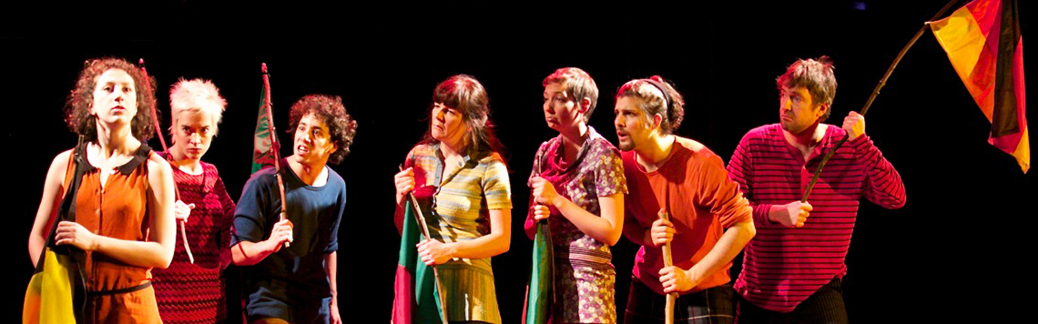 Pour mettre en scène ce conte cruel, Christine Delmotte a choisi de faire littéralement jouer les comédiens dans un décor-terrain de jeux où une cage à écureuils côtoie un vélo dans les airs et une barricade en cartons. Les sept acteurs virevoltent sur leur trottinette, répètent leur haka de guerre, brandissent leurs drapeaux, courent en tous sens avec espièglerie, la personnalité de chacun se dessinant même s’ils incarnent à tour de rôle Amélie. Dans une belle choralité, ils insufflent une vitalité étonnante au spectacle sans temps mort sans oublier la petite dose de perversité et de cruauté qui donne tout son sel à cette histoire de jeux d’enfants.