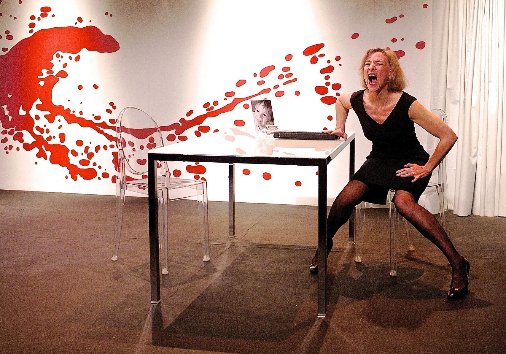 Laurence d’Amelio, campe une passionaria de la justice, un bouffon à nez rouge qui crache sa vérité aux rois qui tiennent la télé, une amante jeune, volcanique, entière... Sa performance notamment en clown notamment en clown est stupéfiante, comme l’est d’ailleurs celle d'Anne Beaupain, dans un rôle moins spectaculaire, mais parfaite dans celui d’une permanente ébréchée…