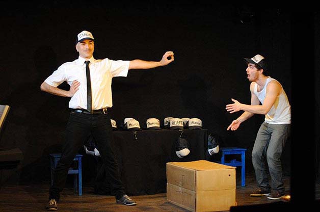 Tour à tour, Sam et Max, nos deux créateurs inspirés, sont maladroits et géniaux et nous offrent presque malgré eux une véritable performance. Sans décor, sans costume, sans rien, ils jouent une vingtaine de personnages, accompagnés d’un pianiste et de plein de casquettes. Idée de génie. Pour chaque personnage, une casquette avec son nom écrit dessus. Il suffisait d’y penser.