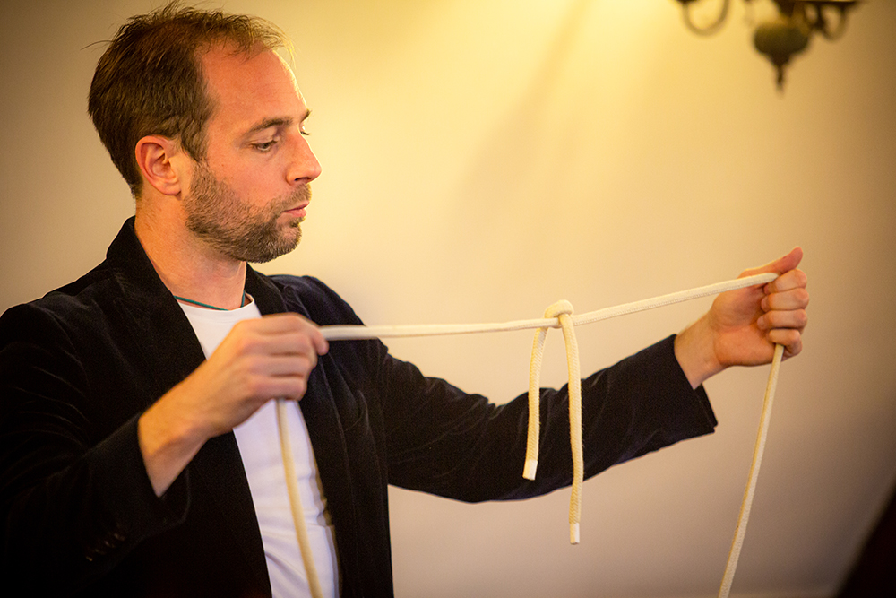 La plupart des magiciens, dont Jack Cooper, se produisent habituellement sur scène, entourés de nombreux effets : musique, lumières, fumigènes, vidéo... Cela participe bien sûr au show. Mais soyons honnêtes, il s'agit bien souvent d'une ceinture de sécurité pour l'artiste. La fumée aurait-elle caché quelque artifice ? Le son camouflerait-il quelque chose qu'il ne faut pas entendre ? Qui sait ? Et de toute façon, seule la magie du show importe. Mais ici, rien de tout cela. De par la proximité, il s’agit pour le magicien d’un vrai saut dans le vide. Il est seul avec vous...