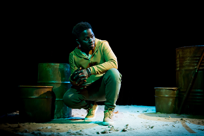 Fran choisit le seul-en-scène pour livrer les étapes chronologiques de son voyage. La raison de son départ ? La liberté. Parce que quand on est un homme d’Afrique noire issu d’une famille pauvre, deux voies s’offrent à nous : « soit celle de la souffrance à la recherche du bonheur de sa personne et de toute sa famille, soit être un parasite de la société pour toujours. » Refusant d’être esclave de la pauvreté, il se jette à corps perdu dans la première option, sans se douter que l’esclavagisme prend de multiples formes.
