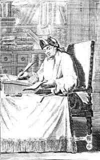 «Je n'eus pas achevé d'arpenter la rue qui tombe en face de notre maison que je rencontrai à l'autre bout une troupe assez nombreuse de personnes tristes. Quatre d'entre eux portaient sur leurs épaules une espèce de cercueil enveloppé de noir. Je demandai à un spectateur ce que signifiait ce convoi semblable aux pompes funèbres de mon pays. Il me répondit que ce méchant et désigné du peuple par une chiquenaude sur le genou droit[3], qui avait été convaincu d'envie et d'ingratitude, était décédé d'hier, et que le Parlement l'avait condamné, il y avait plus de vingt ans, à mourir de mort naturelle et dans son lit et puis d'être enterré après sa mort.