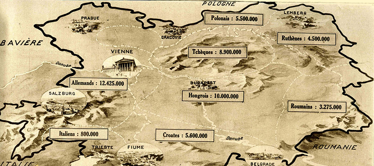 Carte de la répartition des diverses nationalités en Autriche-Hongrie (1914)