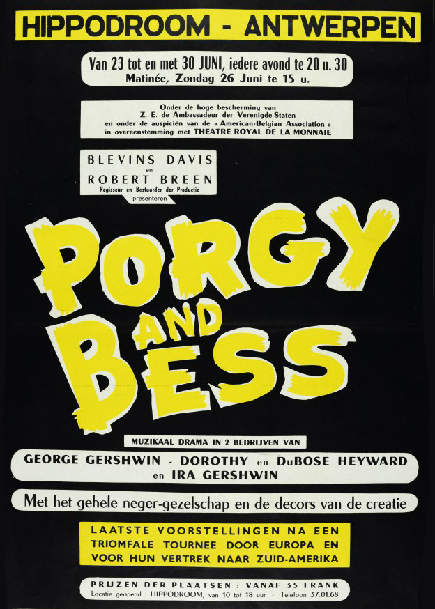 - 5 au 14 mars 1965 (6 représentations) – Mise en scène de Ella Gerber – Andrew Frierson dans le rôle de Porgy – Joyce Bryant dans le rôle de Bess – Une production de «The New York City Opera Company»