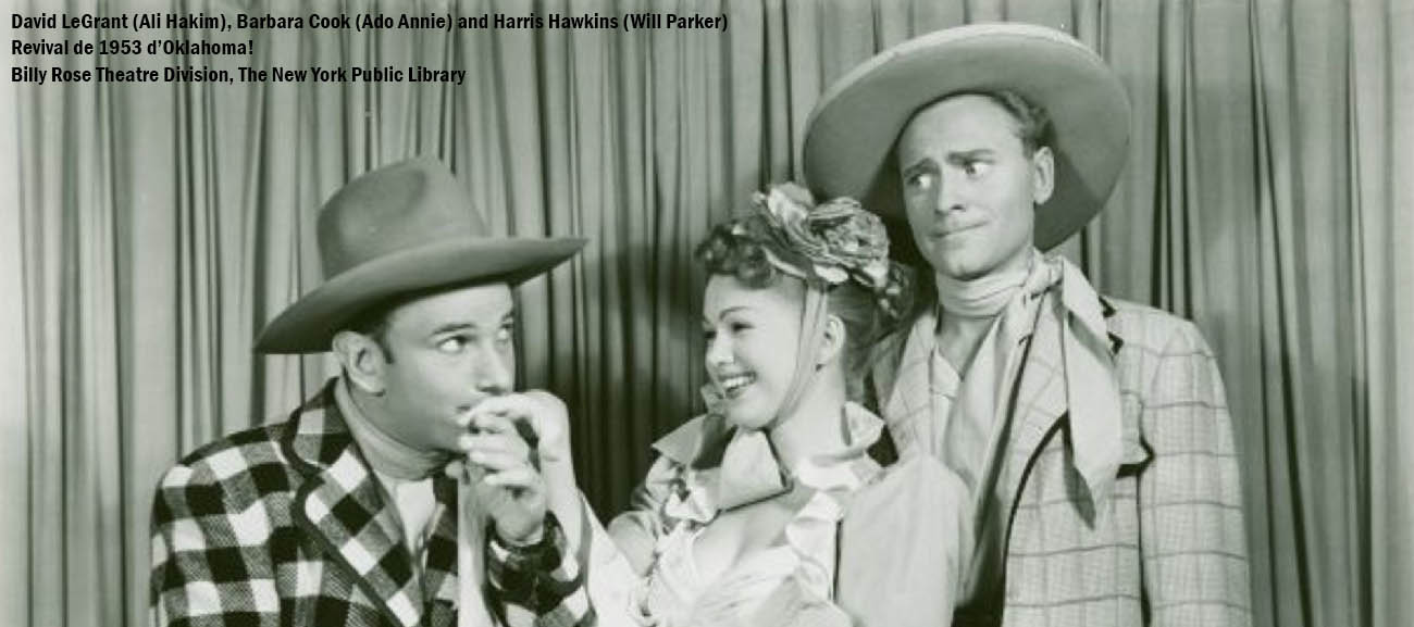 Alors qu'est-ce qu’Hammerstein a pu apporter de révolutionnaire avec Oklahoma! ()? C’était bien plus qu’étoffer les personnages avec des paroles réalistes. Il était aussi un librettiste de premier ordre et il a complété l'histoire de base de Green Grow the Lilacs avec une sous-intrigue, la romance fantaisiste entre Will Parker et Ado Annie. Et enfin, avec l'ajout du colporteur, désormais nommé Ali Hakim, Hammerstein a pu équilibrer le triangle romantique principal (Curly-Laurey-Jud) avec un autre (Annie-Will-Ali). Les intrigues secondaires romantiques, allaient être désormais incontournables dans le théâtre musical. Cela date d'Oklahoma! ()....