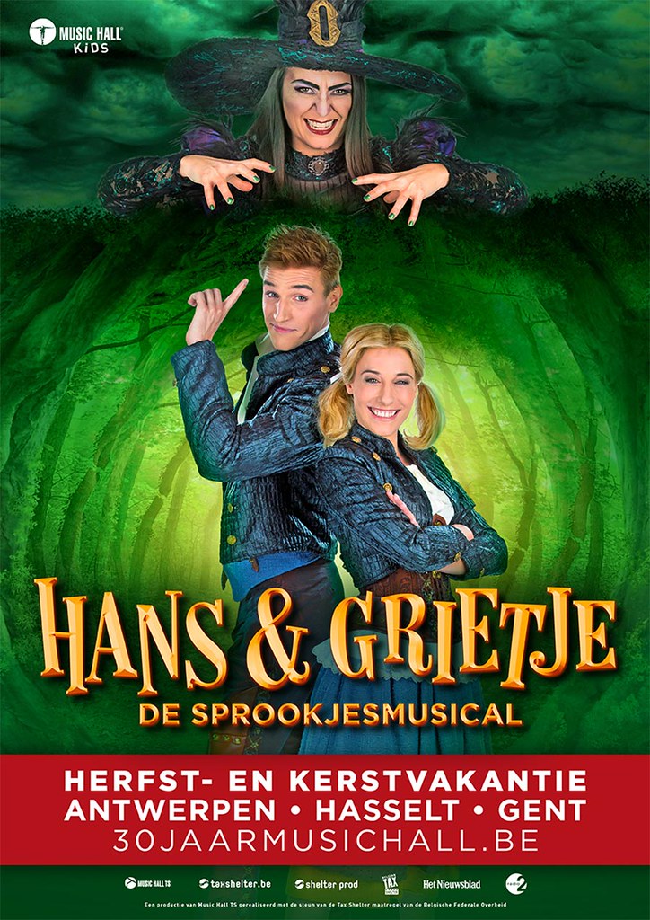 Type de série: OriginalThéâtre: Capitole Theater (Gand - Belgique)Durée : Nombre : 4 représentationsPremière Preview : Saturday 22 December 2018Première : Saturday 22 December 2018Dernière : Sunday 23 December 2018Mise en scène : Brigitte Derks • Chorégraphie : Christian Celini • Producteur : Avec : Frank Beurskens (Father/Lackey 1), Elke Buyle (Narrator 2), Charline Catrysse (Whoppie), Oonagh Jacobs (Narrator 1), Matthew Michel (Prince), Ilse La Monaca (Witch), Rosanne Pits (Mother/Cinderella), Ianthe Tavernier (Gretel), Charlotte Verduyn (Narrator 3), Wout Verstappen (Hansel), Jervin Weckx (Lackey 2/Woodchopper), Michael Zanders (Floppie)