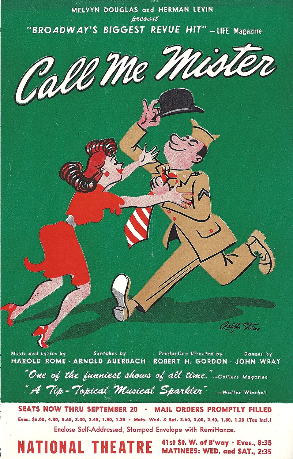 Tout au long des années de guerre, des spectacles tels que This Is the Army, Winged Victory, et Tars and Spars ont célébré et honoré les militaires américains en temps de guerre. Maintenant que la guerre était terminée, Call Me Mister a décidé de regarder l’Amérique d’après-guerre à travers le prisme d’anciens militaires qui sont de retour à la maison et de s’adapter à la vie civile.