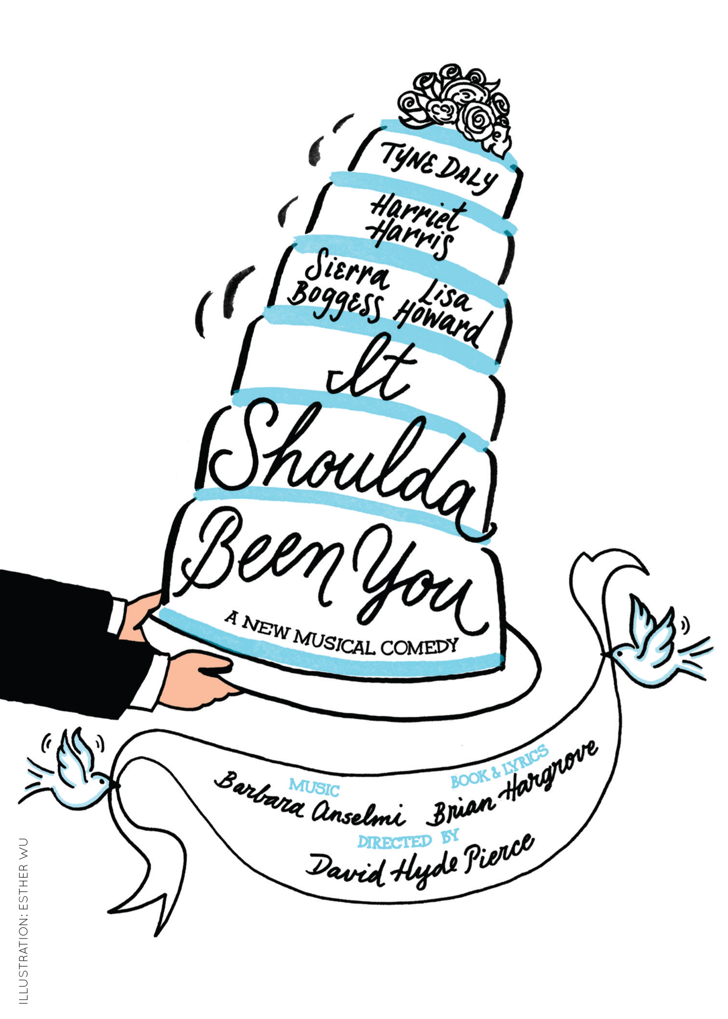 It Shoulda Been You premiered at the George Street Playhouse, New Brunswick, New Jersey, on October 4, 2011 and closed on November 4. The musical was directed by David Hyde Pierce and starred Tyne Daly (Judy Steinberg), Lisa Howard (Jenny Steinberg) and Harriet Harris (Georgette Howard). The book and lyrics are by Brian Hargrove with music by Barbara Anselmi, and additional lyrics by Jill Abramovitz, Carla Rose Fisher, Michael Cooper, Ernie Lijoi and Will Randall.