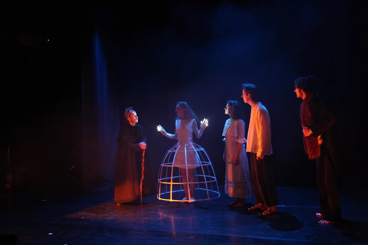 L'insaisissable Oiseau Bleu est une quête initiatique, une fable sur la recherche du bonheur. Sous la plume de Maeterlinck, le conte philosophie se dessine entre poésie, onirisme et fantasmagorie. À l’origine, l’œuvre est composée de six actes douze tableaux et prévoit 43 personnages. Jouée des milliers de fois, adaptée à plusieurs reprises au cinéma, elle trouve ses racines dans l’imaginaire de l’auteur, mais aussi dans celui des metteurs en scène. (…) L’oiseau bleu proposé par la Compagnie du Simorgh peut se comparer au diamant de Tyltyl. Chacun n’en percevra que quelques facettes, judicieusement choisies dans le texte et mises en scène avec féérie, respect et imagination sans jamais en dénaturer l’esprit de Maeterlinck.