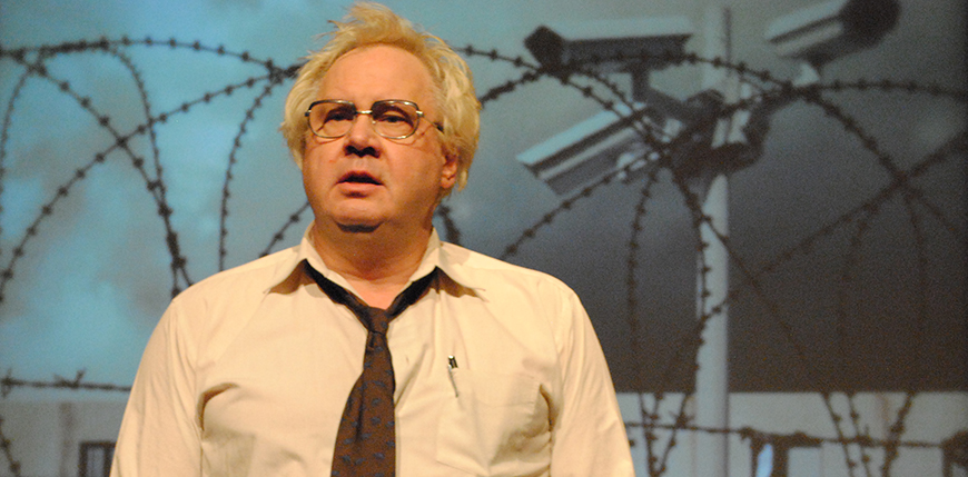 On est heureux de retrouver Eric De Staercke seul sur les planches, ce qui ne lui était plus arrivé depuis quelques saisons. Ce texte lui va à merveille : il peut y exercer son talent d’humoriste pince-sans-rire, et parcourir, de sa généreuse présence, les stations de ce corrosif chemin de croix. Le metteur en scène Georges Lini joue de toutes les qualités de son acteur pour nous offrir un spectacle drôle et percutant, accompagné pour (presque) seule scénographie, d’images vidéo bien choisies qui font puissamment résonner le comique des situations.