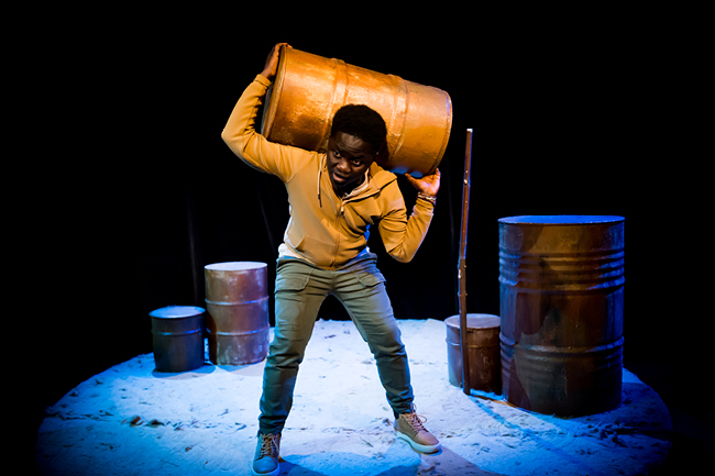 Fran choisit le seul-en-scène pour livrer les étapes chronologiques de son voyage. La raison de son départ ? La liberté. Parce que quand on est un homme d’Afrique noire issu d’une famille pauvre, deux voies s’offrent à nous : « soit celle de la souffrance à la recherche du bonheur de sa personne et de toute sa famille, soit être un parasite de la société pour toujours. » Refusant d’être esclave de la pauvreté, il se jette à corps perdu dans la première option, sans se douter que l’esclavagisme prend de multiples formes.