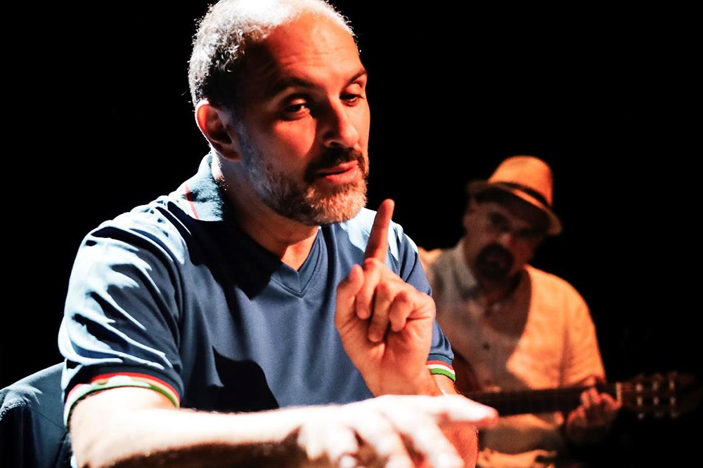 Minute par minute, Fabrice Piazza et Emmanuel Baily à la guitare donnent corps au savoureux texte de Davide Enia et vous font revivre ce moment « historique » qui emportera les fans de foot mais pas que! Un récit haut en couleur, dans la pure tradition d’un théâtre de narration. Une chronique d’un match de football épique à travers le prisme d’une famille sicilienne.
