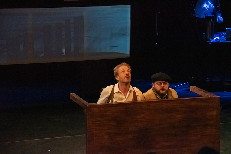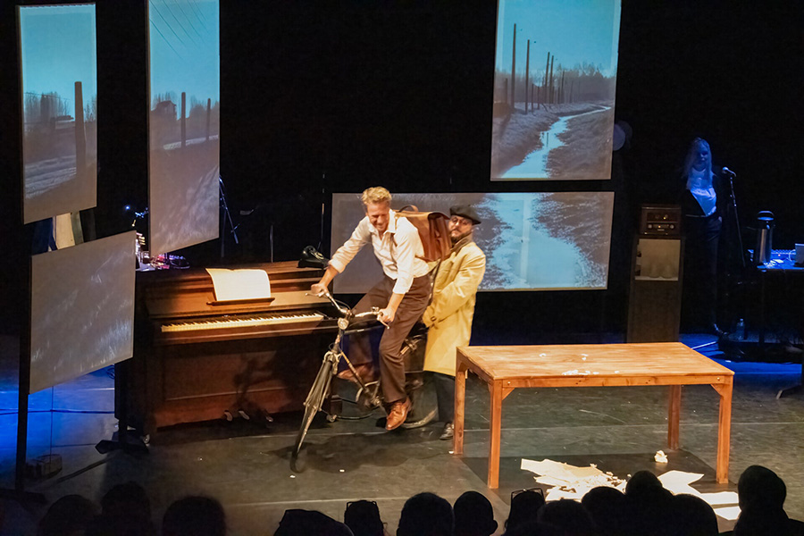 Van harte welkom ! Bienvenue ! La pièce se joue dans les deux langues : un mélange. Nederlands/Frans door elkaar ! Rassurez-vous, la combinaison des langues, de la mise en scène et du jeu permettent de suivre parfaitement le tout même sans connaître l’autre langue.