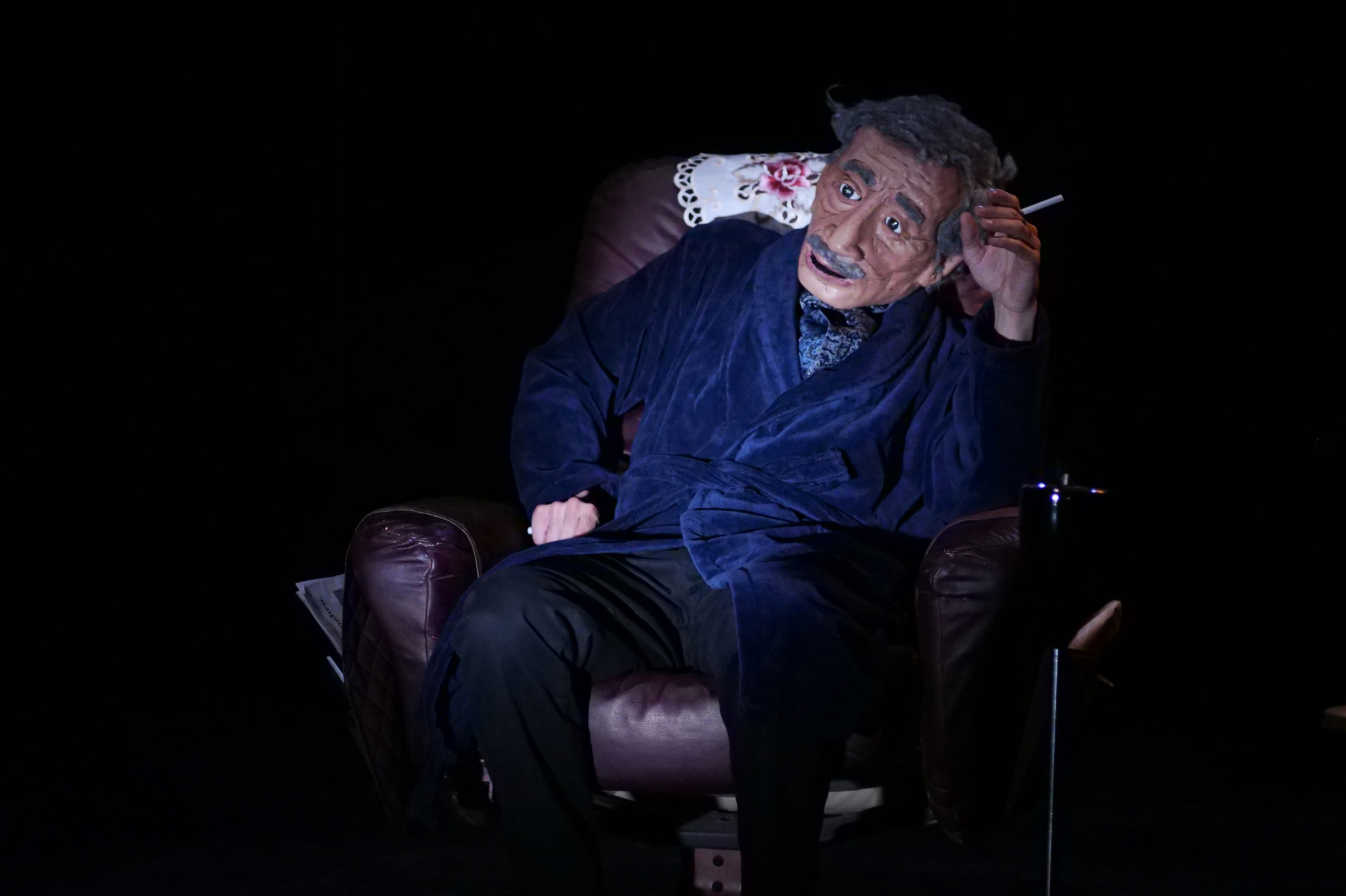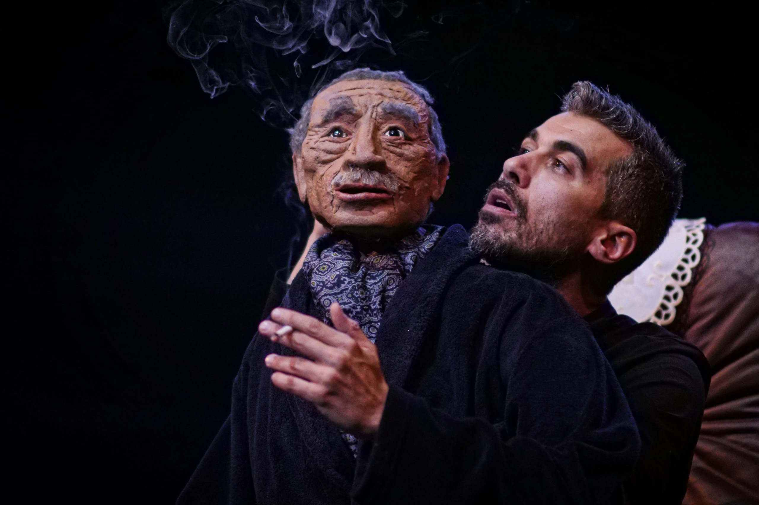 Par l’intermédiaire de marionnettes et d’un masque, Othmane Moumen crée trois doubles de son père et livre un dialogue attendrissant, drôle et sincère entre une marionnette et son manipulateur, entre un papa et son fils. Prêter son corps à ce double du père lui permet de revivre des épisodes de sa vie, en y apportant une touche d’onirisme : sa carrière de chauffeur de bus à la STIB, sa nostalgie renforcée par l’écoute d’Oum Khaltoum, ses rêves, ses fantasmes.