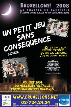 Un Petit Jeu sans conséquence, pièce que nous vous avons proposée lors du Festival Bruxellons! 2008 et dans laquelle jouait déjà Pierre Pigeolet, a obtenu pas moins de neuf nominations aux Molières 2003 et en a obtenu cinq, dont l’une des plus prestigieuses: Meilleur spectacle de l’année.
