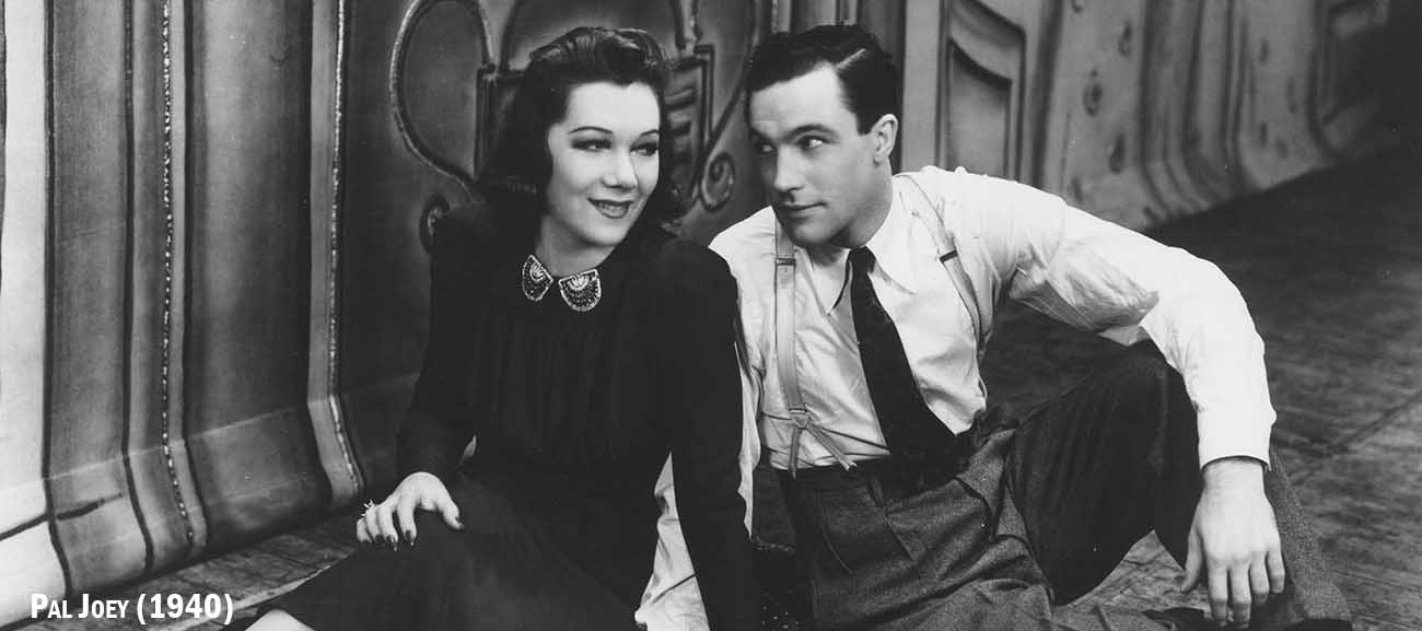 Le livret est inspiré d'une série d'histoires que John O'Hara avait écrites pour The New Yorker, sur un chanteur/animateur de boîte de nuit miteux (Gene Kelly) et les femmes qu'il séduit et abuse. Ce n’est pas le genre de chose qu’on attendait dans un musical. O’Hara et George Abbott écrivent le livret de Pal Joey () (1940, 374 représentations), qu’Abbott produit pour un prix économique de 100.000 $. Même à ce prix, un musical centré sur un ignoble antihéros était un pari. ()
